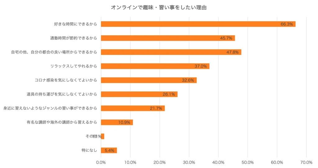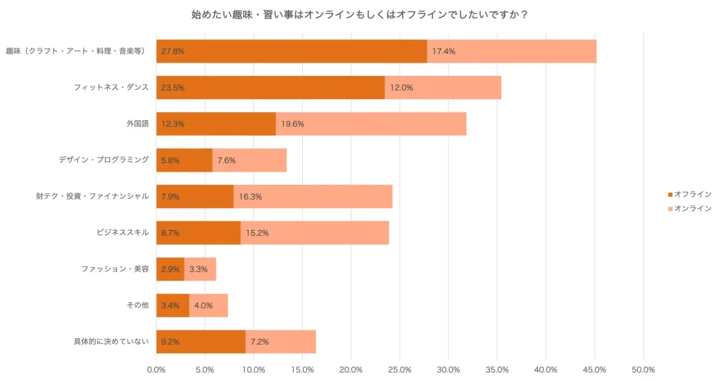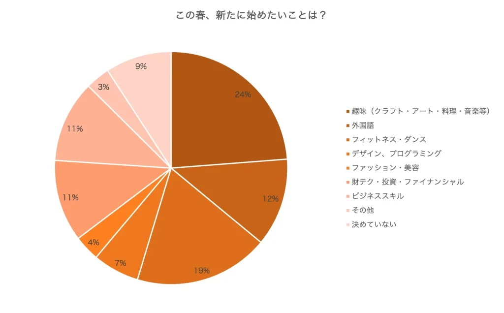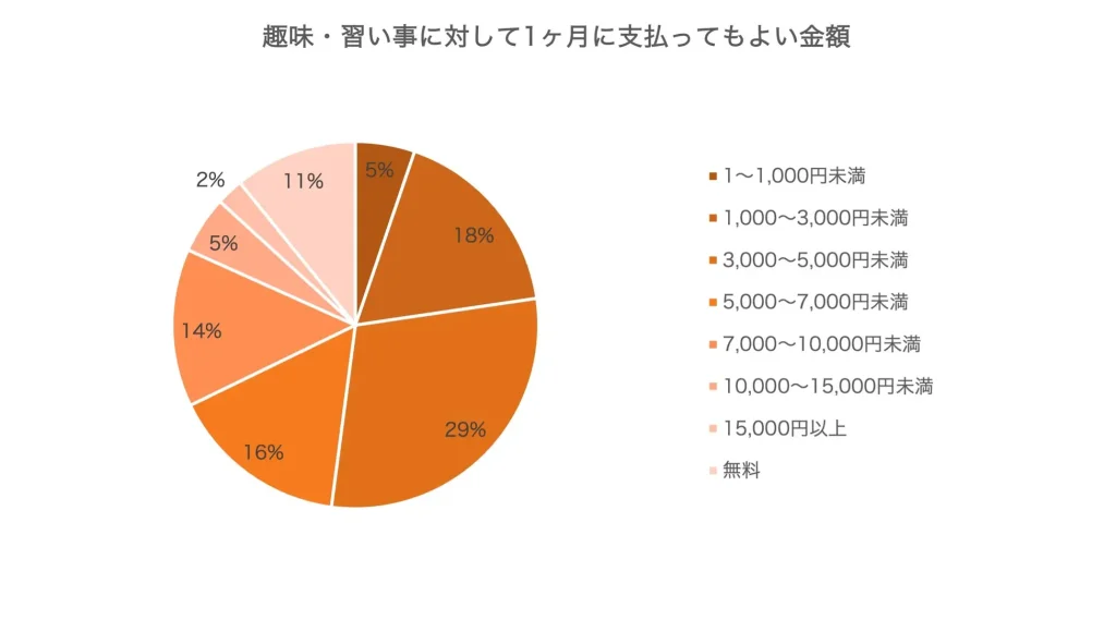 出典:新年度•新生活に新たな趣味や習い事を始めたい人は56%。「資格取得・副業に活用したい」傾向が高く、仕事に生かせるスキルアップに繋がる学びはオンライン志向に。費用は3,000〜5,000円/月が最多