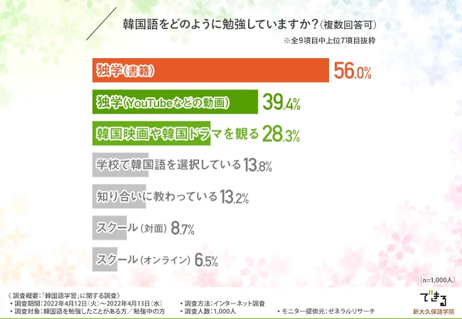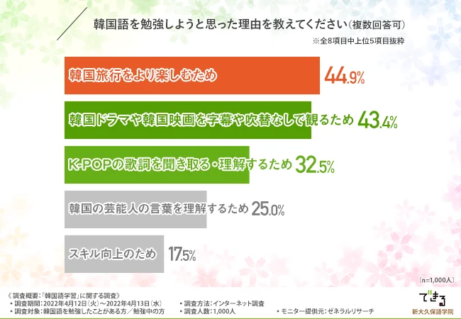 出典:【推しの言葉が理解できる…!】韓国語学習者のほとんどは趣味がきっかけ!6割以上が韓国語は他言語よりも勉強しやすいと回答